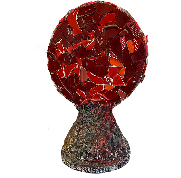 Met dit "gebroken" rode hoofd probeer ik zowel de twijfel als de kracht en doorzettingsvermogen van Rosa Luxemburg weer te geven.