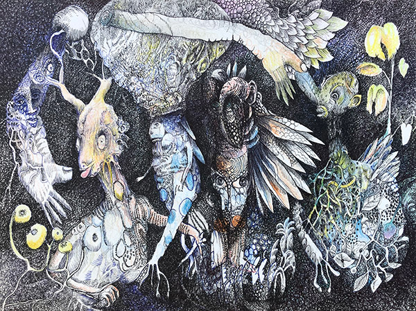 fineliner, ballpoint en kleurpotlood op papier - 21 x 28 CM - 2022